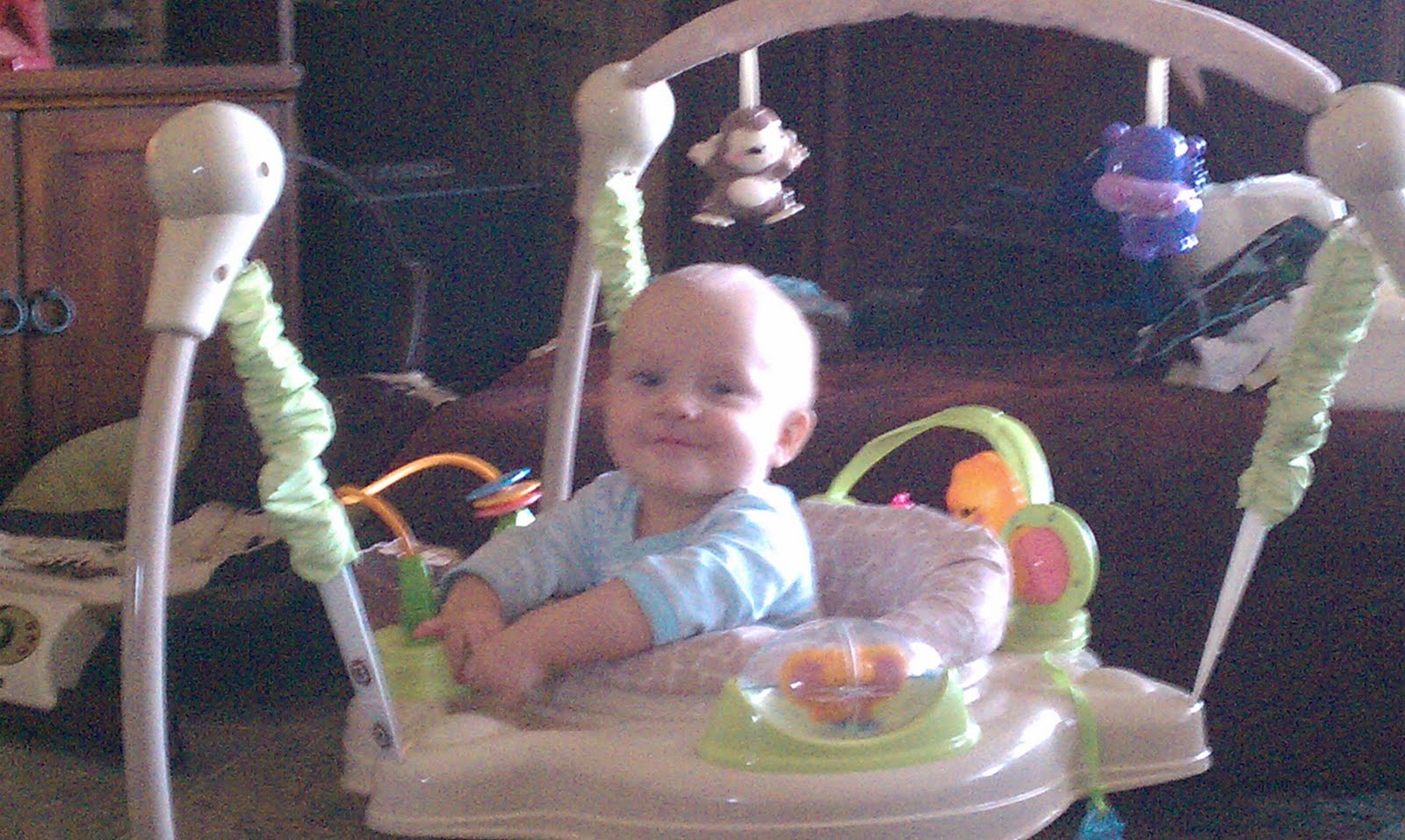 Bad picture quality but isn't little dude cute? He all of the sudden LOVES his Jumperoo. Maybe it's because his feet finally reach the ground!